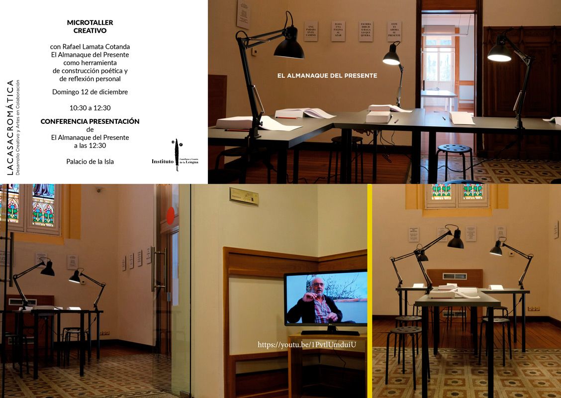 Entrevista realizada a Rafael Lamata Cotanda que acompaña la exposición EL ALMANAQUE DEL PRESENTE realizada en el Palacio de la Isla, sede del Instituto Castellano y leonés de la Lengua. En Burgos. El Almanaque del Presente es un proyecto de escritura que deriva hacia un proyecto singular en el que el autor invita a una reflexión activa del lector.
